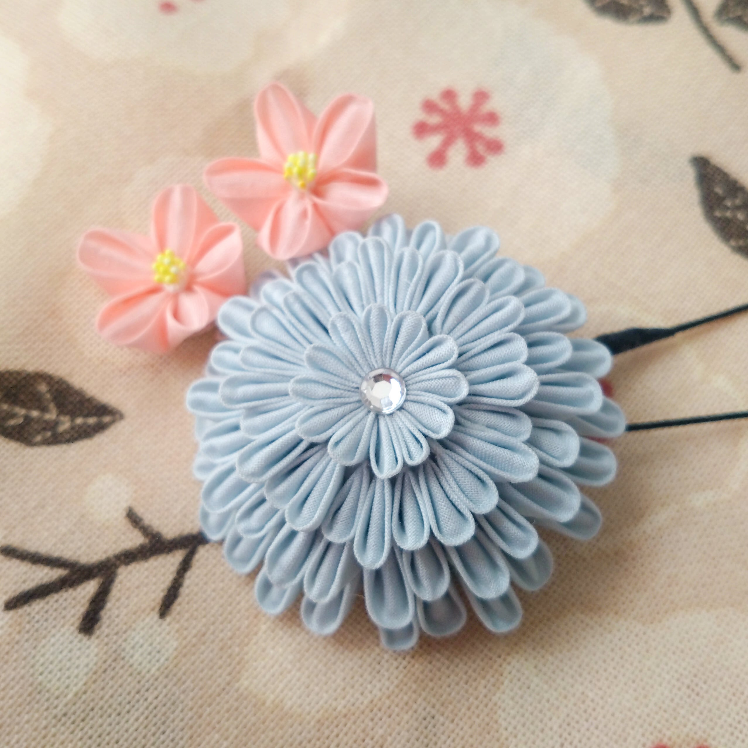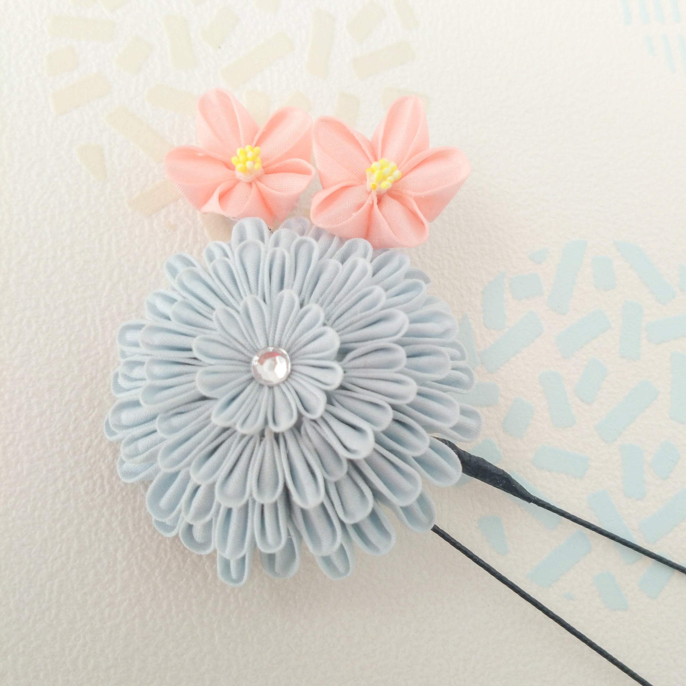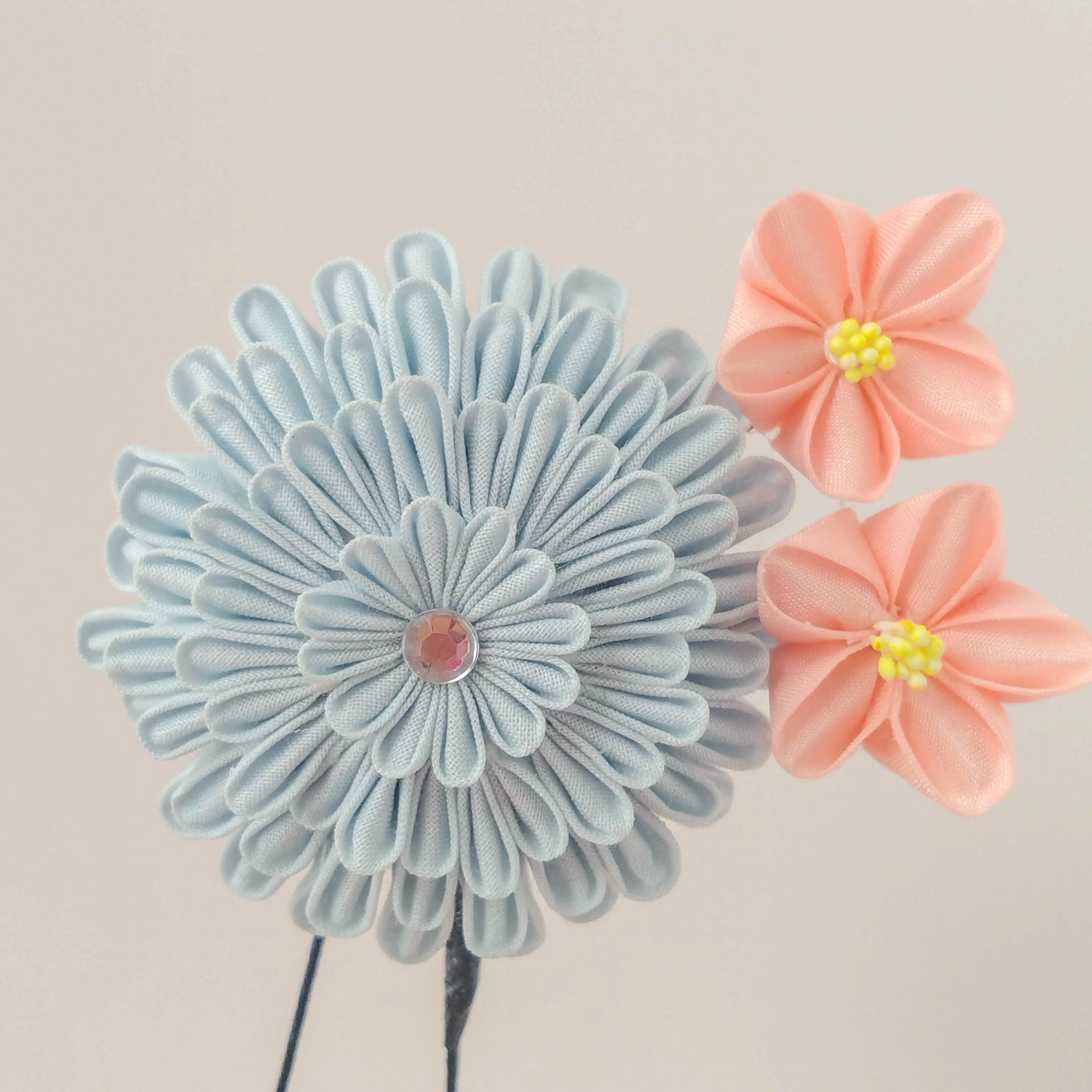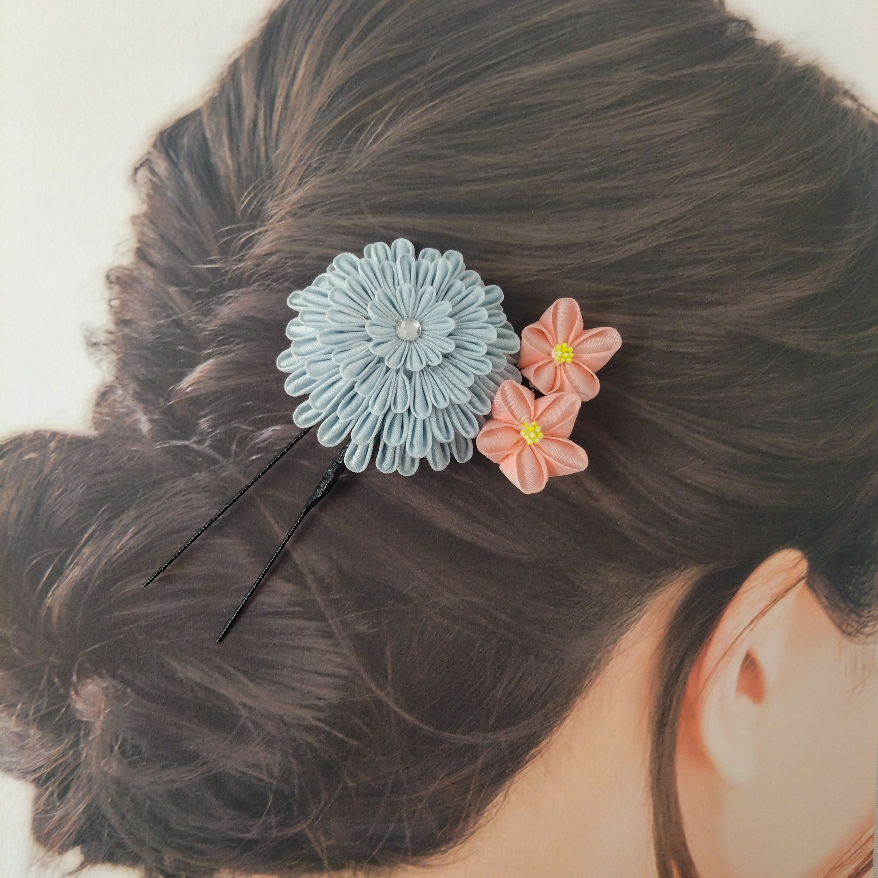 羽二重(正絹)の水色を使ったママ用髪飾りです。