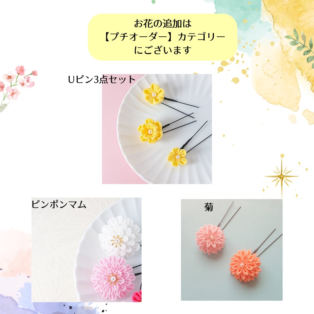 ※こちらの作品は防水加工しておりますが、つまみ細工は水に非常に弱いですので、お取り扱い、保管にはご注意下さい。