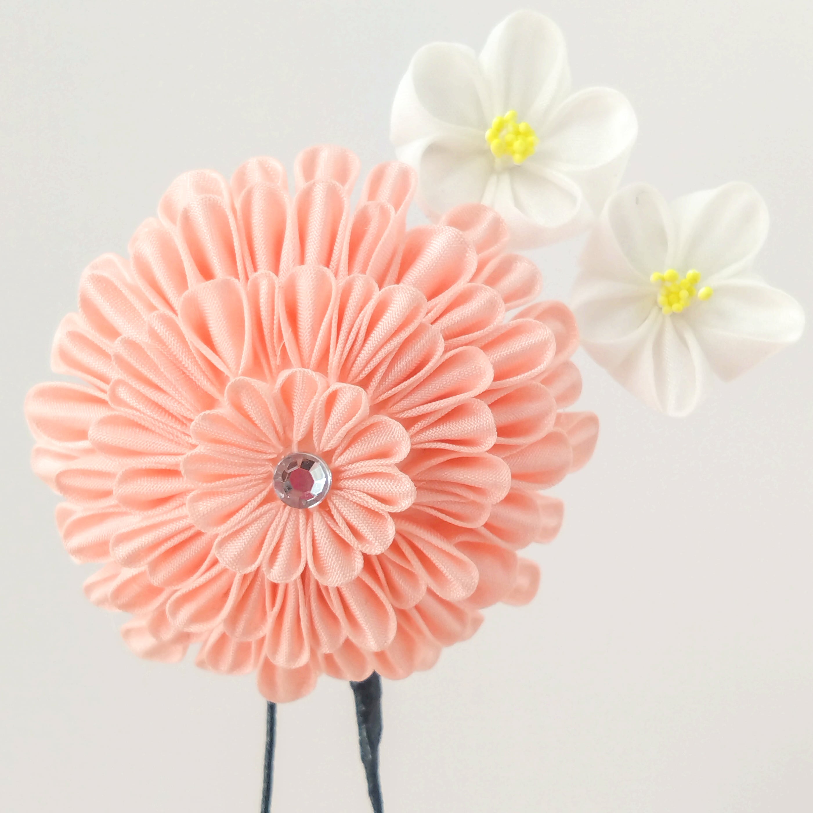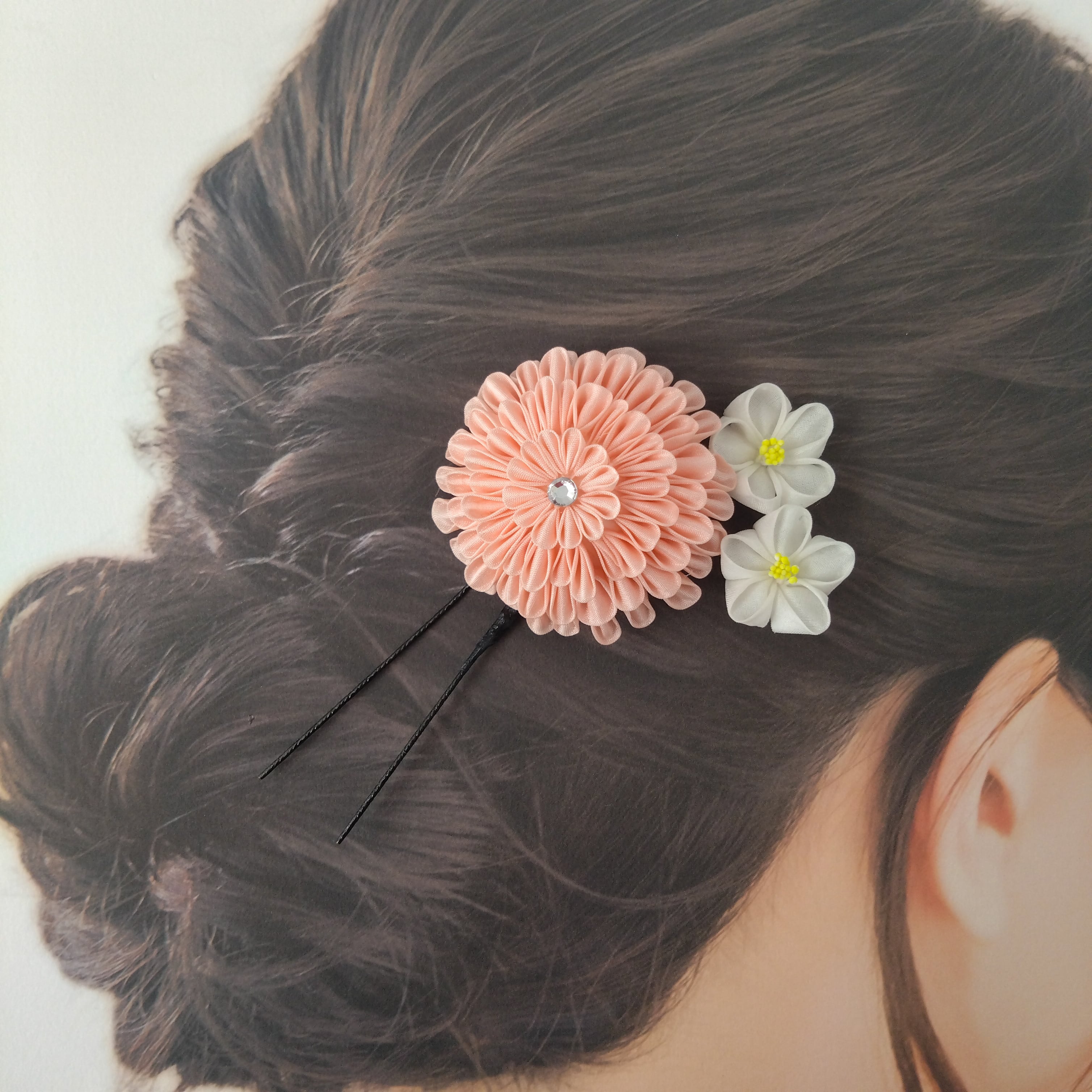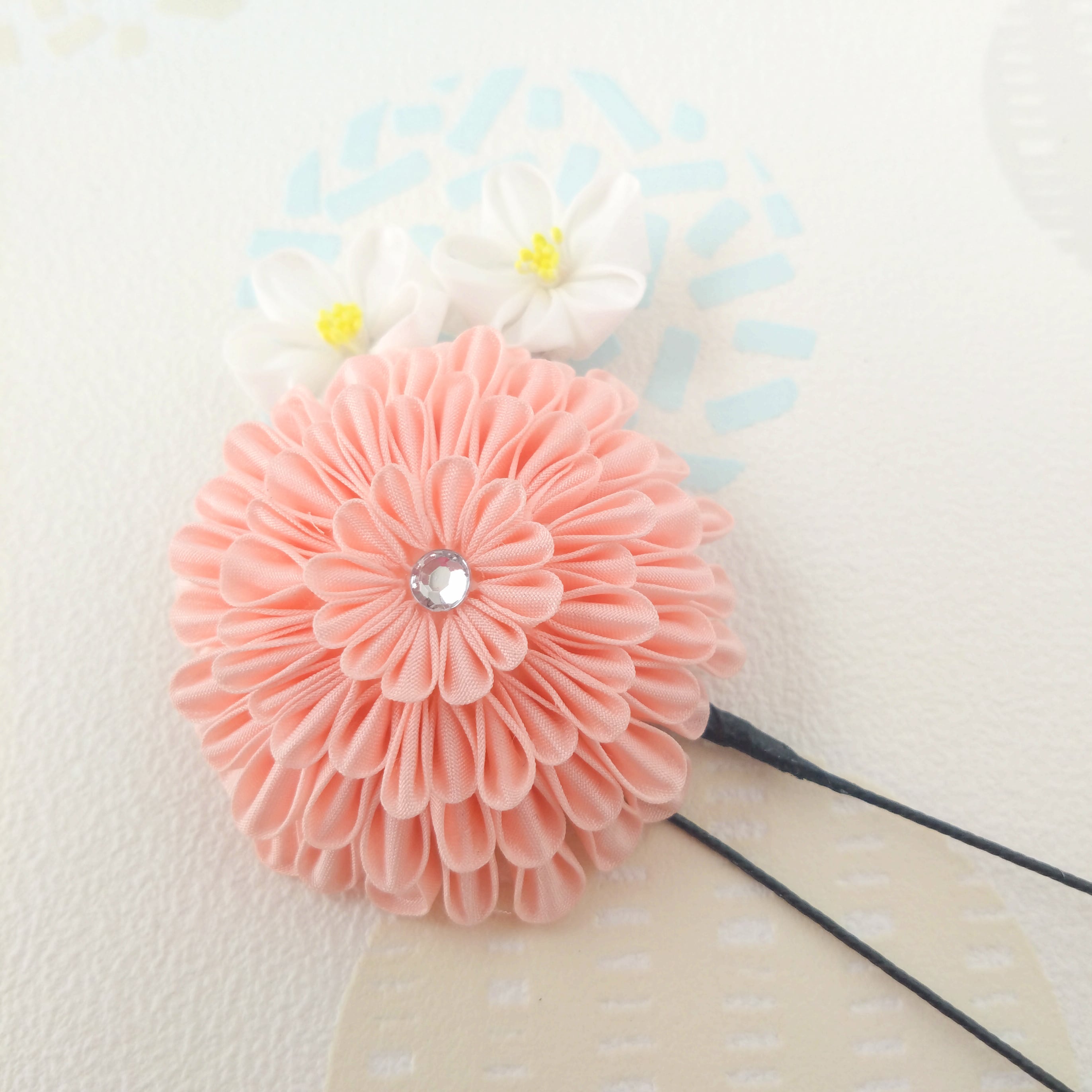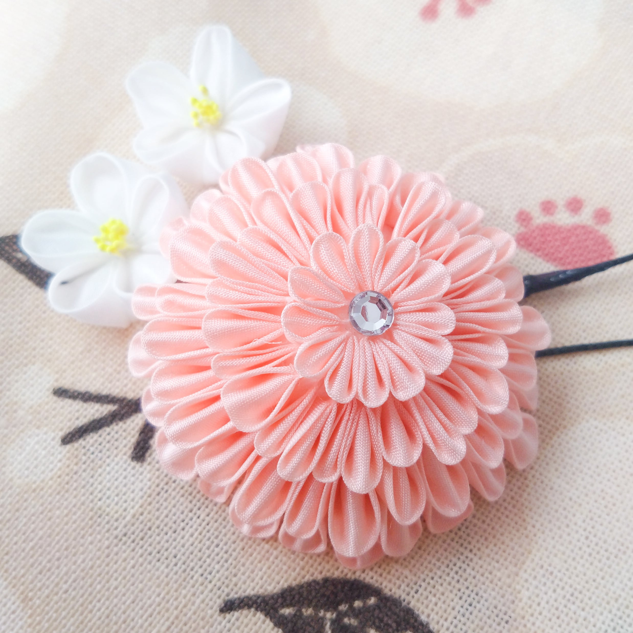 羽二重(正絹)の薄いピンクを使ったママ用髪飾りです。